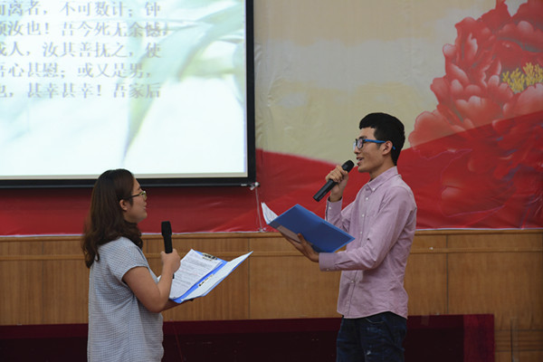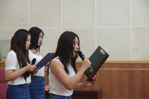 6月7日晚,学校首届中外诗歌朗诵会“相约初夏,歌颂经典”,在图书馆总馆学术报告厅举行。科技处处长胡容玲,外国语学院党总支副书记杨芳,刘娟、谢琼和涂慧琴老师,新闻与法学学院董福升、张勇会老师,以及学生代表张淑娴和刘沐霖担任评委。活动由外国语学院和新闻与法学学院联合主办。