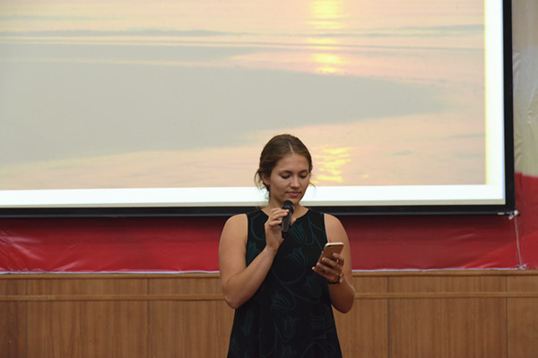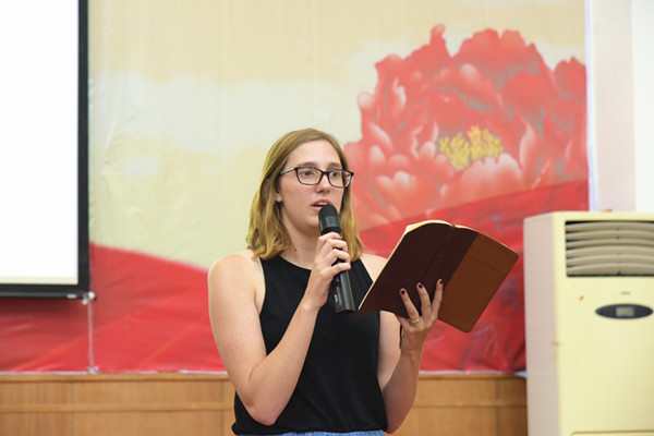 爱荷华交流学生也在朗诵会上一展风采。Emily带来了《joy comes with the Morning》 ,Jordyn的《Psalm 16:8-11》,Max的《Life Beyond》 ,Leah的《Psalm 100》 。将英文诗歌朗诵推向高潮。中英文化在此碰撞,诗歌各有其美,即使风俗人情迥异,但情感因朗诵而相通。