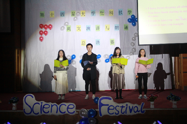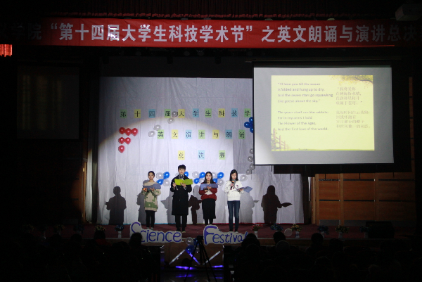 为营造英语学习气氛,丰富校园文化,11月30日晚,由校团委主办,外国语学院分团委承办的“第十四届大学生科技学术节”之英文朗诵与演讲总决赛于模拟法庭顺利举行。