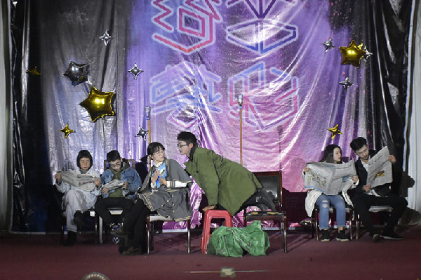 写有“绮光艺彩”字样的红灯笼挂在模拟法庭门口,引来行人纷纷侧目,门内亮丽的灯光、多彩的气球营造出热闹的氛围......12月18日晚6点半,艺术设计学院“绮光艺彩”元旦晚会在模拟法庭拉开了帷幕。校团委书记罗萍,艺术院院长胡雨霞、副院长宋华、党总支副书记杨琳、分团委书记韩峰及老师们一同出席参加晚会。