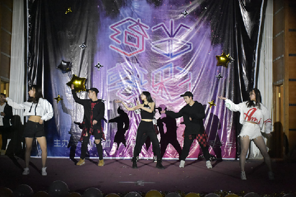 晚会在“视觉盛宴”的光影互动舞中拉开序幕,《我们拥抱亲吻相爱的人》、《海阔天空》、《思恋是一种病》、《see you again》等歌曲为在座观众带来了一场视听盛宴。热情洋溢的舞蹈《极乐净土》、活力无限的集体舞《失恋阵线联盟》、梦幻感十足的串烧舞蹈《魅》、灯光闪烁的组合舞蹈《千手曳舞》让人眼花缭乱,惊叹连连。《疯狂诊室》展现了哑剧的独特魅力,而小品《考场风波》则展现了艺术生的面试场景,爆笑的表演让场内的笑声不绝于耳。小品《甄嬛后传》中男演员的反串表演刷爆了同学们的朋友圈,《go head》T台秀更是让观众们大饱眼福,同学们欢呼如潮。