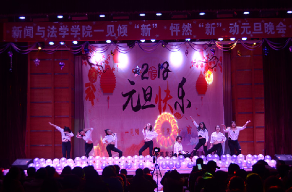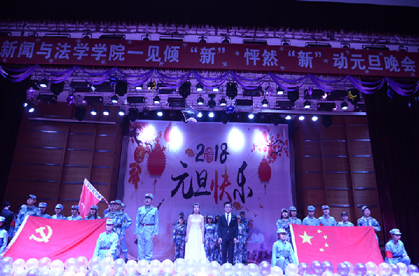 12月19日晚,新闻与法学学院一见倾“新”怦然“新”动元旦晚会在模拟法庭精彩开演。校团委罗萍书记、郭佳老师,新法院党总支副书记吴世杰、分团委书记吴菁,易霜剑老师出席活动。