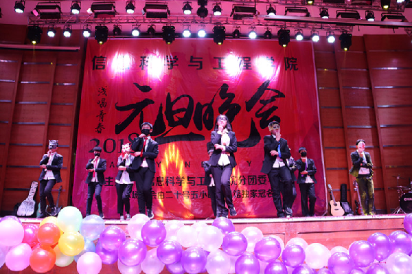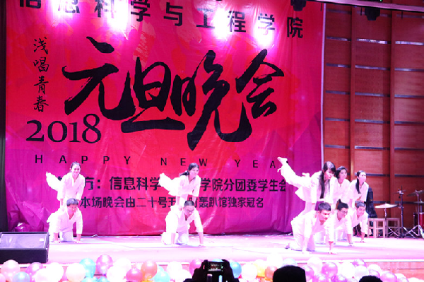 祥鸡鸣声辞旧岁,瑞犬欢腾迎新春。信息科学与工程学院“浅唱青春”2018迎新年元旦晚会于12月26日晚在模拟法庭举行。信科院院长黄瑞光,校团委书记罗萍、教务处副处长雷敏、艺术设计学院党总支副书记杨琳,信科院教职工出席晚会。
