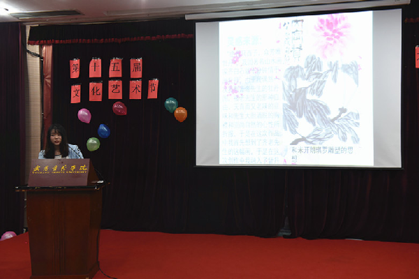 本次比赛要求同学们以插画、摄影、美术作品(绘画)、手工、模型等方式,以“五分钟”为主题进行创新和视觉创作,展现中国改革开放的变化。伴随着观众掌声欢呼的响起比赛正式拉开序幕。20名选手参赛,每位选手都实力不凡,有的同学用超轻黏土捏成牡丹的每一片花瓣,粘成数朵牡丹齐放的模型,表现中国像牡丹一样璀璨开放的成长历程;有的同学把中国的国兽凤凰、国鸟丹顶鹤和国花梅花融入到太极之中,形成了一幅新的太极绘画图,将中国的传统文化表现得淋漓精致;有的同学将武汉的标志性建筑绘入木片之中,形成富有武汉特色的木片画……