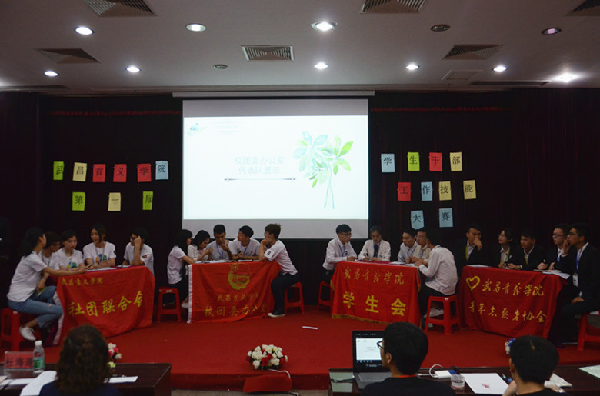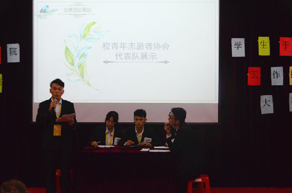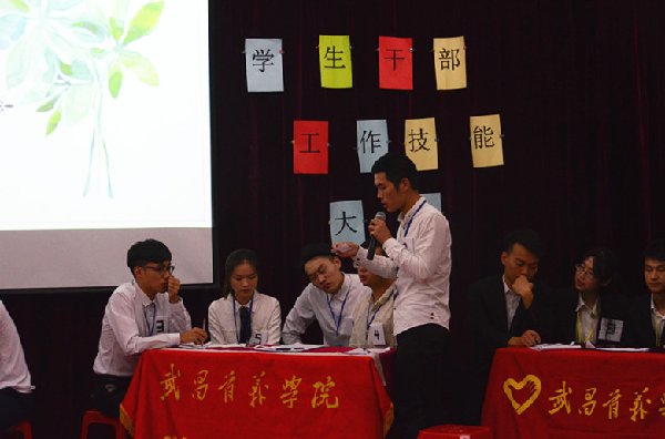 为选拔优秀学生干部、提升学生干部工作技能、展示学生干部风采、促进学生干部之间的相互交流和共同进步。5月29日晚,校团委举办首届学生干部工作技能大赛,学生会、校团委办公室、青年志愿者协会和社团联合会参赛。校团委书记罗萍,学生教育科科长陈琳、信科院分团委书记汪晓航、艺术院分团委书记韩峰、校团委郭佳老师出席并担任评委。