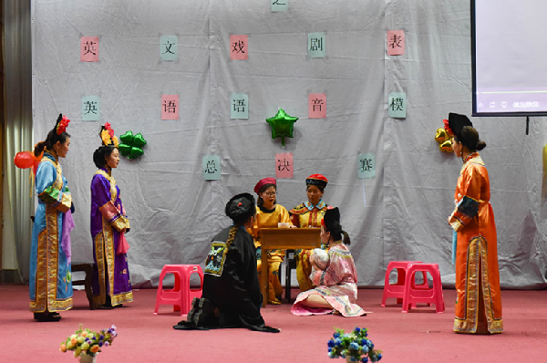 为营造英语学习气氛,丰富校园文化,5月28日晚,由校团委主办、外国语学院分团委承办的第十五届大学生文化艺术节之英文戏剧表演与语音模仿总决赛在模拟法庭盛大开展。