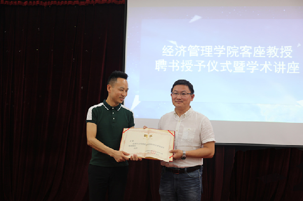 6月20日下午,经济管理学院客座教授授聘仪式暨“名人名企”学术讲座在11栋106室举行。周黑鸭国际控股有限公司品牌中心总监刘涛受聘为经济管理学院客座教授,并现场为师生作“新形势下市场洞察”讲座。该院副院长李林出席仪式,全体辅导员及学生代表参加。