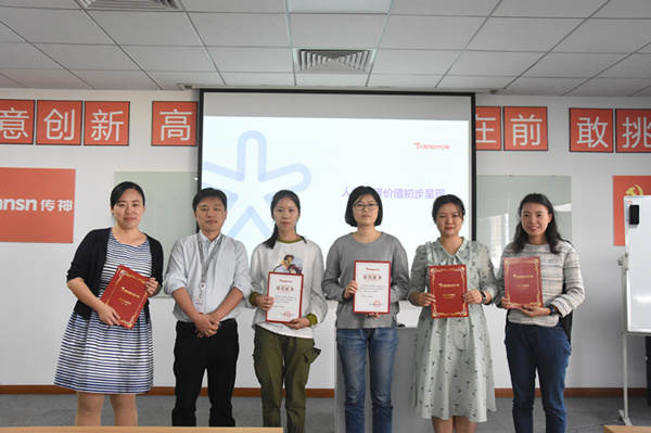 抵达公司后,同学们首先观看了传神语联网公司宣传片,并在公司高校事业部向袁媛及“人机共译”项目组龚政的带领下参观公司,对公司的构成和业务有了一定了解。随后,龚政为同学们分析项目目前开展情况,总结第一轮翻译任务的进度,并对第二阶段任务做了简单介绍。在第一轮翻译任务中表现优秀的张萌等8名同学被授予“人机共译优小译”荣誉称号,传神语联网公司副总裁沈玮为他们颁发证书。