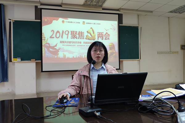 为深入学习贯彻习近平新时代中国特色社会主义思想,更进一步增强“四个意识”、坚定“四个自信”、做到“两个维护”,努力提升学生党员思想政治理论水平、增强党支部凝聚力,外国语学院学生党支部于3月20日召开专题会议学习2019全国两会精神。会议由学生党支部书记韩喆老师主持。
