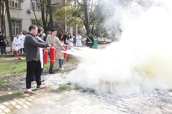 随后,图书馆及信息技术中心员工进行了灭火实战演练。保卫处消防安全负责人黄银章强调,图书馆是学校消防安全关注的重点对象,每位员工学会使用消防器材至关重要。他详细介绍了灭火器和消防水枪的使用方法。之后现场点燃明火,每位员工现场使用灭火器和消防水枪灭火,真正掌握消防设施的使用方法。