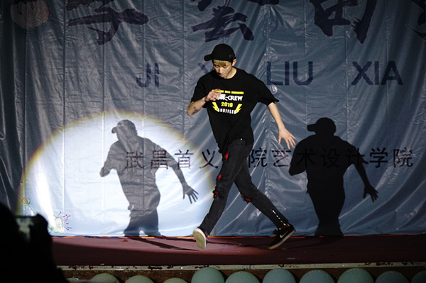 吉他社带来开场表演《Bad Romance》,乐手劲头十足,主唱嗓音激昂,场上气氛瞬间被引燃;《大学时光》别出心裁地用人影戏形式展现学子的四年记忆,短短几分钟,从新生报到至分别,细腻的表达令观众感慨万千;随后是曳步舞表演,动感的节奏、迅捷的步伐令人眼花缭乱;古装小品《翡翠西瓜》反转连连,出人意料,演绎了一出啼笑皆非的遗产争夺大戏。