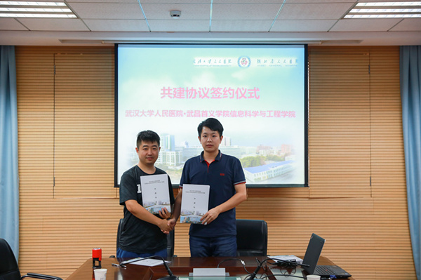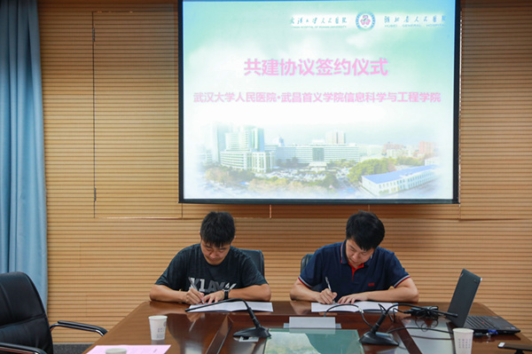 6月28日下午,我校信息科学与工程学院与武汉大学人民医院志愿服务共建合作协议签约仪式在人民医院举行。武汉大学人民医院团委书记雷宏博、信科院分团委书记汪晓航代表双方签订合作协议。