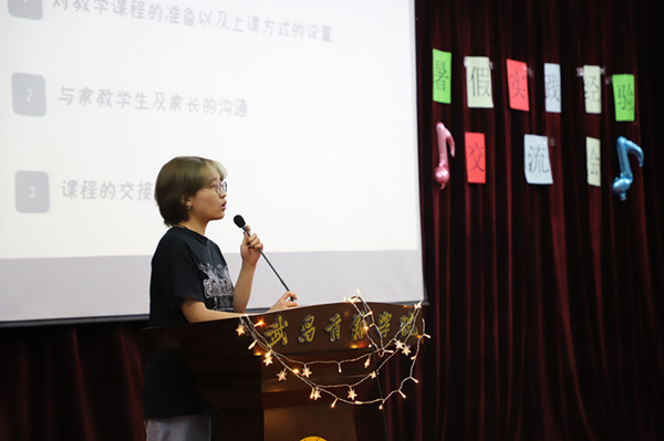 10名学生代表分别以PPT的形式展示暑期社会实践活动的丰富成果。参与魔耳国际教育于湖南汨罗任职小学老师的吕静收获了自己的一套育人方式后进行了一场异国之旅;在轮滑机构做教练的侯孟格从小朋友身上学会了坚持;在屈臣氏、肯德基兼职的钱显银收到工资的同时不禁感叹生活的不易;在家乡人才公共服务局实习的曹海思讲到自己学会一些新技能同时性格也变得外向……很多同学将社会生活与专业知识充分结合,通过实践深入了解社会,积累了阅历和经验,煅炼了思考、动手、合作能力,培养了职业素养,激发了创新能力和热情。台下同学听得认真,纷纷表示在聆听分享后,大开眼界的同时也有激发了思维。