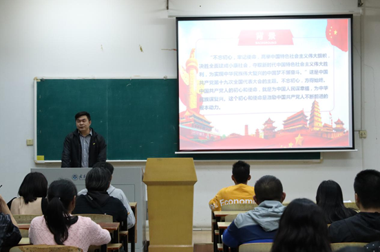 10月14日晚,新闻与法学学院党总支书记吴世杰以“不忘初心使命,勇于担当担责”为主题,面向全院学生党员、预备党员及部分入党积极分子讲授了一堂生动的党课。