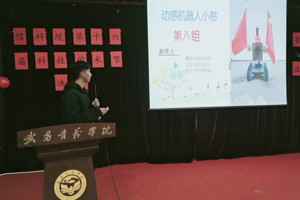 11月22日晚,由校团委主办,信息科学与工程学院分团委承办的第十六届科技学术节之电子产品设计大赛决赛在11-106隆重举行。校团委书记罗萍,信科院党总支副书记汪晓航、副院长蔡红娟,电子系主任黄向宇、信息系陈青老师担任大赛评委。