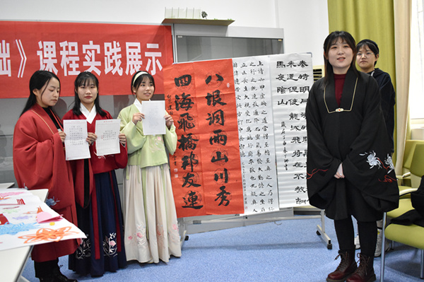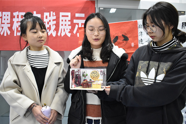12月26日下午,2019级会计、外语专业的《思想道德修养与法律基础》课堂上,由同学们制作的十五组蕴含着浓浓“中国味”的手工作品,让任课老师周红丽与同学们应接不暇,啧啧称赞!