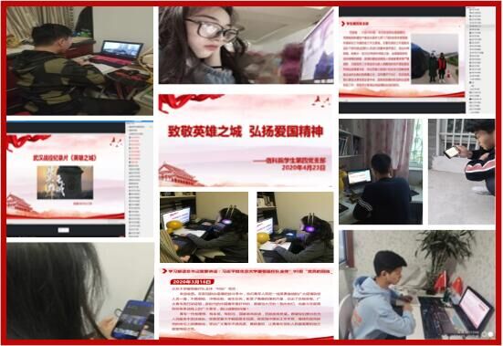 “云党日”宣传党员先进事迹,发挥模范带头作用。各党支部充分发挥自身优势,群策群力,保障疫情期间支部主题党日活动生动有效开展。坚持每月一次支部主题党日活动,线上活动形式多样、内容丰富。学生第四党支部召开“致敬英雄之城,弘扬爱国精神”主题党日活动,通过观看视频和学习抗疫先进典型事迹,体会中国担当,弘扬爱国主义精神,充分发挥党支部政治核心、战斗堡垒以及先锋模范作用。学生第三党支部发挥支部考研党员积极性,收集所有考研人员复试信息及面试题目,利用主题党日活动开展线上指导帮辅。通过学习,涌现出了一批优秀党员和入党积极分子,学院共有14名党员和43名入党积极分子积极投身疫情防控阻击战,展现党员责任担当,彰显党员先锋本色。