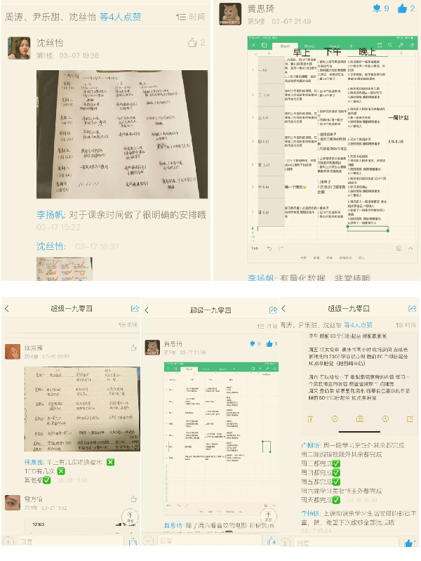 线上“自律”打卡 养成良好作息 2020-05-21 10:18:04 <<< 上一张 下一张 >>> 为了解学生居家学习、生活和思想状况,引导学生合理安排作息时间,养成良好学习生活习惯,艺术设计学院设计类1904班自3月开始,在班主任李扬帆老师带领下,线上举办了“自律达人”打卡比赛。 全班同学在每周一制定好一周学习生活计划,发布在学习通班课群,并在每周日汇报计划完成情况,次周一由李扬帆老师发布周达人榜单,点赞数与计划达成率加权成绩前五名的同学,获得“周达人”称号,连续四周获评“周达人”的同学成为“月达人”。为激发同学们的参与热情,鼓励获奖者,活动设置了小奖品。活动开展两个多月来,同学们参与度极高,良好生活作息逐步养成。 特约记者陈逸枫 编辑 张璐