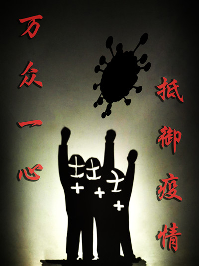 这些作品以《众志成城 抗击疫情》为主题,是同学们在老师的指导下,以极大的创作热情完成,表达了对抗疫工作者的敬意。其中,饶星琳同学采用皮影戏的拍摄手法,将制作好的纸片人投影在墙上,并运用PS制作成一幅抗击疫情的海报。她表示,每次在完成作业时都绞尽脑汁地想点子,既要体现时代价值,还要突出专业特色,非常锻炼专业能力。
