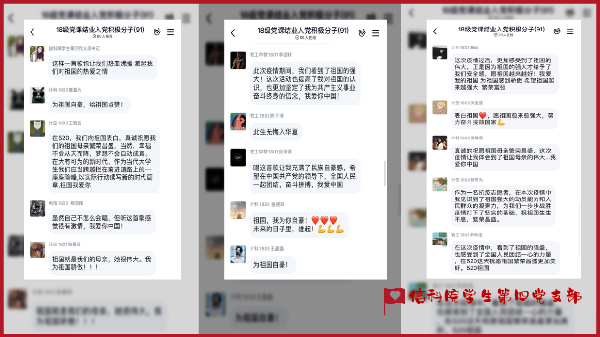 5月20日中午,信科院学生第四党支部全体党员和入党积极分子线上开展了“抗新冠肺炎,与祖国同在”520向祖国表白的云党日活动。活动分为“心系民众,为祖国点赞”“国际合作,为祖国骄傲”“无私援助,为祖国自豪”“表白祖国,为祖国献唱”四个部分。