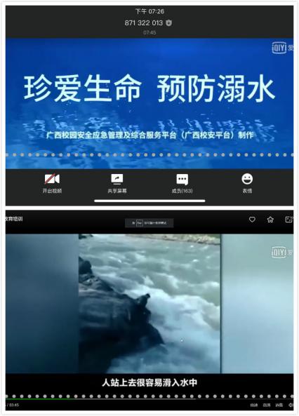 机电与自动化学院党总支整理相关教育资料,辅导员利用周讲评对学生开展集中教育,各专业班级分别召开网络班会,组织学习讨论,深入推进防溺水安全教育。班会上,各班班长带领同学们认真学习教育课件内容、观看教育视频,通过列举真实案例,普及“游泳安全注意事项”“如何预防溺水”“游泳切忌”“溺水如何自救”“有人溺水如何施救”等知识。