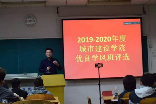 为表彰先进,推动学风建设再上新台阶,11月11日晚,城建学院在11栋108教室举办了“城市建设学院2019-2020优良学风班评选”活动。活动以线下线上结合的形式开展,院长冯仲仁连线参加,党总支书记林飞、副院长莫文婷、分团委书记魏娜和辅导员张晶、王露老师参加现场活动,各年级各班及嘉鱼校区新生学生干部和代表线上参与。