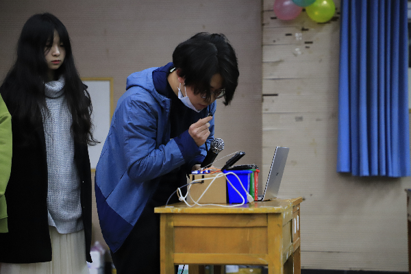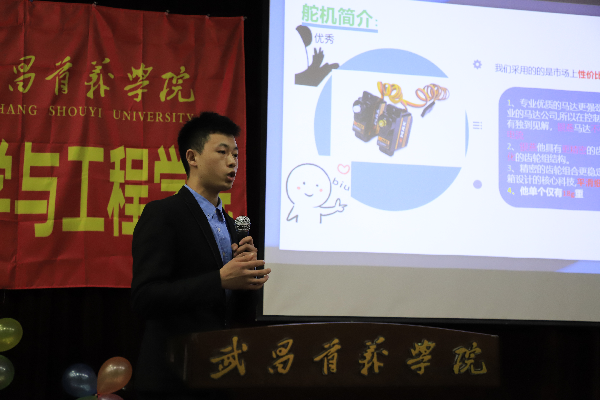 大赛以“抗击疫情成功,科技创造未来”为主题,经过前期初赛角逐,最终有6组选手进入决赛。决赛中,各组选手均在8分钟内,从产品原理、产品功能、产品展示、产品优化四个方面,对自己的参赛作品进行了讲解与演示。评委老师对作品进行了逐一点评。同时,为了响应学校开展读书活动号召,让学生“从书本中获取知识,从知识中得到成长”,比赛增设了知识竞答环节,每组选手共设置5题,每题答对加0.2分。