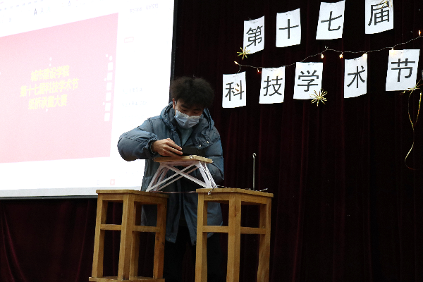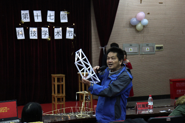 12月2日晚,由校团委主办,城市建设学院分团委学生会承办的“第十七届科技学术节”之“纸桥承重设计大赛”决赛在11栋教学楼106教室举行。校团委书记罗萍,城市建设学院院长冯仲仁、党总支书记林飞、分团委书记魏娜、土木工程专业老师段纪成、肖长永、刘娅婷及辅导员王爱琴、张晶等出席活动。