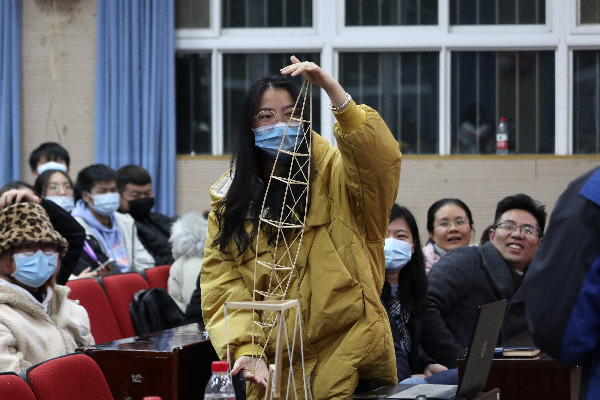 段纪成老师在点评时表示:本次不少参赛作品承载力与美观性兼具,展现了同学们扎实的专业功底,希望大家能通过比赛进一步学好专业知识,打牢专业基础。他还向同学们展示了由模型协会完成的两组设计精妙的结构模型,帮助同学们了解相关知识。