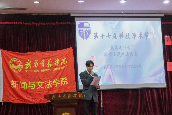 12月9日晚,由校团委主办、新闻与文法学院分团委学生会承办的第十七届科技学术节之“最美逆行者”歌颂主题朗诵比赛决赛在11栋教学楼106教室举行。校团委书记罗萍,新闻与文法学院党总支书记吴世杰、分团委书记吴菁及辅导员谢志洋、李沁、龙卓等出席活动。