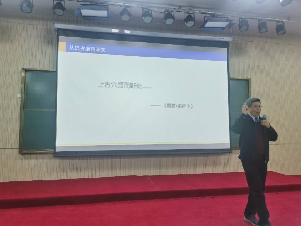 12月8日晚,城建学院顾问袁海庆教授在嘉鱼校区实验楼报告厅为学生作了“从远古走向未来”主题学术讲座。该院党总支书记林飞、副院长莫文婷、辅导员王露及200余名新生聆听了讲座。