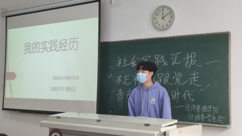 3月19日、3月21日,经管学院分别在武汉校区和嘉鱼校区举办了寒假社会实践评选活动。活动以“不忘初心跟党走,青春筑梦新时代”为主题,同学们围绕“学四史”“知国情”“讲奉献”“感恩情”等内容,通过PPT、图文、视频展示了各自寒假学习和社会实践成果。