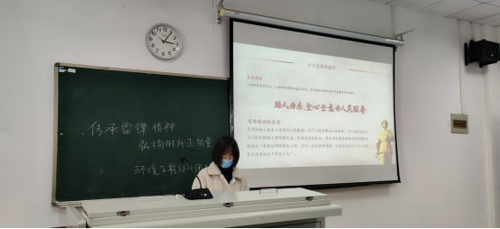 活动中,环境工程1801班团支部通过PPT宣讲,介绍雷锋生平和雷锋精神由来,带领同学们学习雷锋精神时代内涵,呼吁同学们发扬雷锋的奉献精神、爱国精神和合作精神,在生活中形成勤俭节约、吃苦耐劳作风。同学们积极发言,分享了自己身边的学雷锋故事。