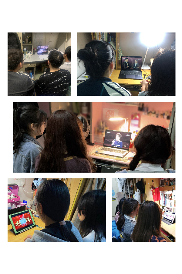 学生第一党支部全体党员在11-202现场实时观看直播;学生第二党支部组织入党积极分子以寝室为单位在线观看;毕业生党员在腾讯会议平台实时进行观看。大家以不同的形式共同学习党员干部的先进模范事例,从抗疫精神中汲取奋进力量。