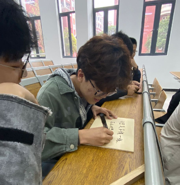 此次活动主题为“绿色有限,爱心无限,用标语点缀校园”。活动中,全体同学分成10个小组,每组4人,其中5组负责设计并手工制作标语牌,5组负责誊写和插放标语牌。同学们把征集到的校园绿化标语写到标牌上,并画上各式各样的简笔画,大家分工明确,配合默契。标语牌制作完成后,同学们将其放置在教学楼附近的草坪中,并与自己制作的标语牌合影留念。