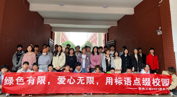 3月31日下午,信息科学与工程学院软件工程2001班在嘉鱼校区开展“爱心标语,绿色校园”活动。