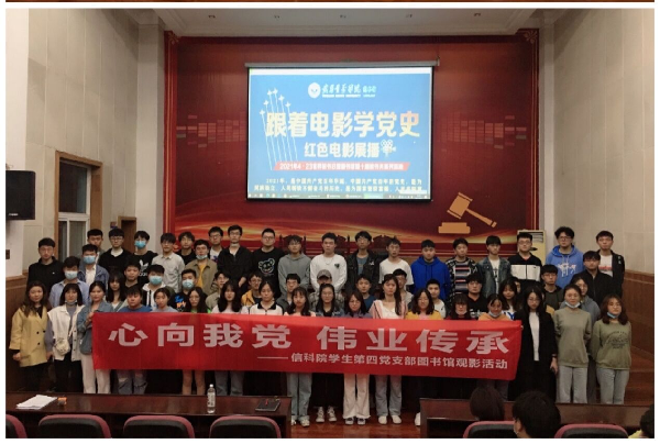 今年是中国共产党成立100周年,为引导广大青年学子学习党的光荣历史和伟大成就,厚植爱党爱国爱社会主义的朴素情感,4月16日,信科院学生第四党支部全体党员参加了图书馆“跟着电影学党史”活动。