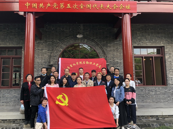 在五大旧址前,总支书记介绍了本次活动的重要意义。保卫第三党支部书记作为领誓人,带领大家在中共五大会址前面向党旗重温了入党誓词。