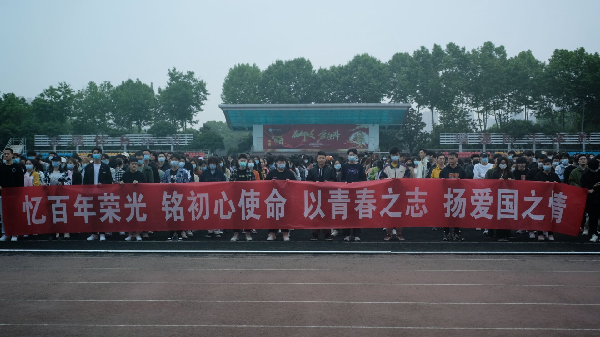 陈佃生带领同学们回顾了党的奋斗历程,他指出,在建党一百周年之际,作为新时代青年学子,应在奋斗中释放青春激情,坚定理想信念,弘扬爱国情怀,践行初心使命。他勉励同学们谨记“学以广才、志以成学”的校训精神,在今后的学习中不断锤炼品格、勇于创新、敢于担当,培养“爱校如家”的责任感和主人翁意识,践行“校兴我荣”使命。