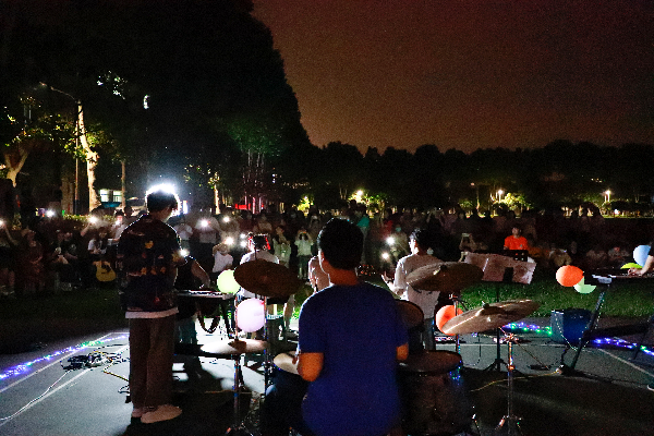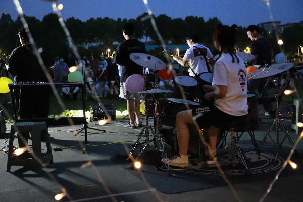 首届校园“独音音乐节”精彩纷呈 2021-05-06 10:02:00 <<< 上一张 下一张 >>> 5月5日晚,由我校独立音乐社举办的首届“独音音乐节”在11栋楼草坪精彩上演。180分钟的音乐会中,独立音乐社的新老社员们共带来流行、抒情、摇滚等多种风格的歌曲近30首,现场高潮不断,掌声欢呼声不停。 “这是社团在疫情后举办的第一次大型活动,很多已经毕业的社员都返校参加演出。我们希望能通过活动丰富大学生们的课余生活,活跃校园氛围,展示首义学子青春活力、阳光自信、朝气蓬勃的精神风貌。”独立音乐社社长赵晗说道。 记者 李康乐 李咏昕 编辑 张璐