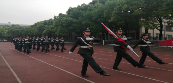 早上6:50,国旗护卫队护送国旗走向升旗台。伴随着雄壮的国歌声,近千名师生庄严肃穆,注视着国旗冉冉升起。