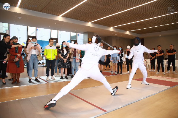 研学交流会前,师生在艺术馆工作人员带领下,参观了浮生边界SONG花艺装置艺术个展和特设击剑馆。浮生艺术馆将“食、酒、茶、谈、弈、悦”六重场景设计集于一体,以艺术化的空间结构呈现了美好质朴的生活方式。