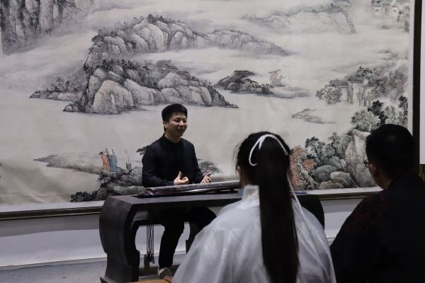 弹奏结束后,邓建新老师为同学们讲解了古琴的结构、琴头、琴颈和砚台,以及琴、瑟、筝三者之间的区别。他提出,“琴者心也,琴者琴也,琴者静也。”弹奏者通过古琴台传达内心的情感,修身养性。他希望同学们能通过此次活动改变对古琴的刻板印象,成为古琴文化的传播者。最后,他以一曲《高山流水》为此次活动画上了圆满句号。