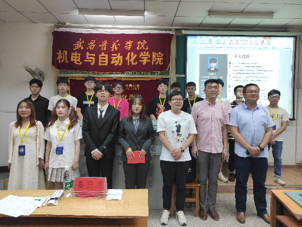 6月2日晚,由校团委主办、机电与自动化学院学生会承办的第十八届文化艺术节之“简职无压力”模拟求职面试大赛决赛在11栋202举行。华晟经世公司行政主管张文龙、技术主管骆质彬,机电与自动化学院分团委书记张冬、辅导员余珮共同担任大赛评委。