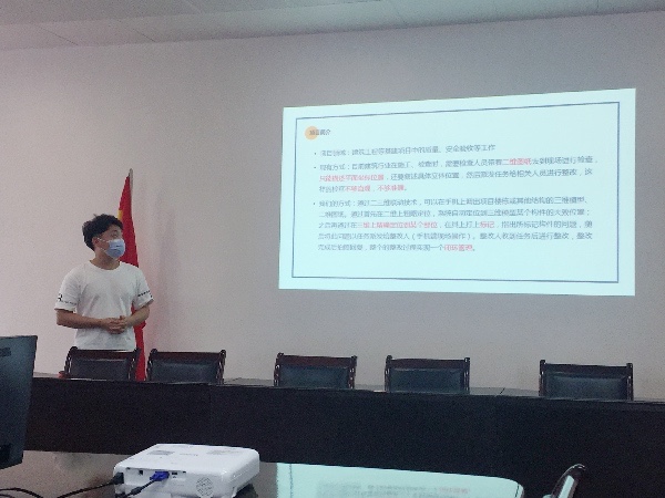 此次共有9个创新创业训练项目(国家级项目3项、省级项目6项)参加结题答辩,分别为《基于BIM的二三维联动技术应用研究》《基于深度学习的社交距离和人群密度预警系统》《基于工程远程数据收集管理系统》《基于TI-RSLK的医疗检测盒自动转运分拣机器人》《基于机器学习的习题智能推荐系统的研究与应用》《基于智能化推送的移动端校园信息聚合平台的研究与应用》《桥梁安全监测毫秒级快采云平台建设》《基于PBL的青少年编程体系化课程研发》《开放水域溺水人员监控救援系统》。答辩采取“5+3”方式,即团队负责人五分钟PPT宣讲、三分钟评审提问。各团队从项目简介、项目完成情况、项目成果、结项总结与展望等方面进行了答辩。评审老师对答辩中存在的不足提出了改进意见。