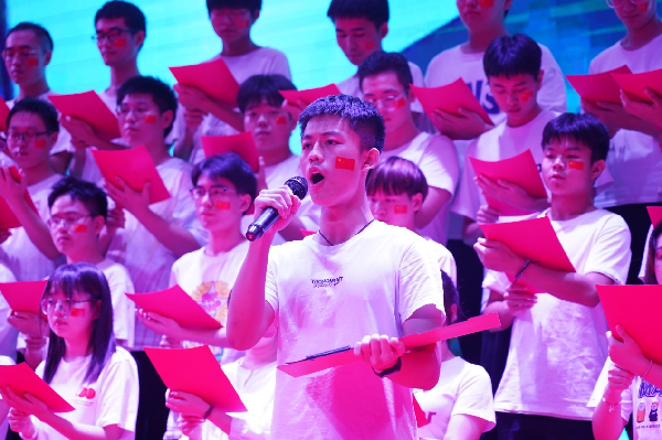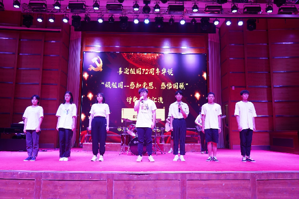 汇演在学生自弹自唱表演《我和我的祖国》中拉开序幕。诗朗诵《青春中国》展现了青年学子立志报国的坚定信念;《我的祖国》《我把青春献祖国》《祖国颂》《可爱的中国》《献礼祖国》等独诵或集体朗诵表演,铿锵有力、感人肺腑;以RAP加唱歌方式演绎的《红色-山河版》,传递出青年学子对祖国的深情告白;《我爱你,中国》《我爱你,中国共产党》《永远跟党走,筑梦新时代》《建党百年》等节目回顾中国共产党的光辉历程,深情讴歌了中国共产党的丰功伟绩。最后,活动在全场师生大合唱《我和我的祖国》中圆满落幕。