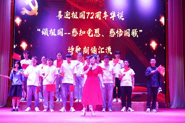 活动伊始,该院党总支书记赵瑜致辞表示,今年10月1日是伟大的祖国母亲72岁生日,师生们通过诗歌朗诵汇演表达对祖国的热爱,抒写对伟大祖国的赞美,同时也传递了牢记初心使命,以寸心寄华夏,以岁月赠山河,以吾辈之青春守卫盛世之中华的担当和决心。