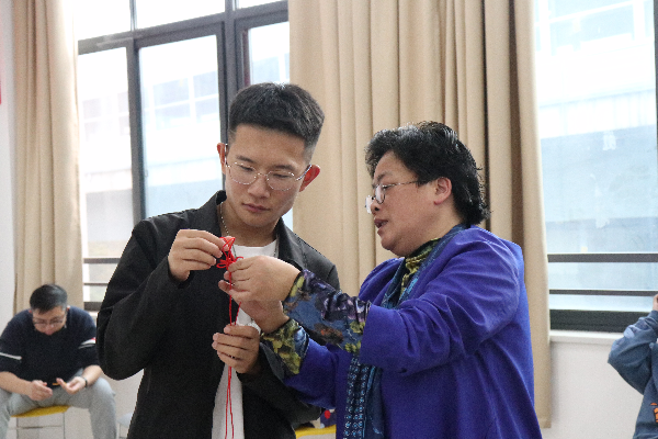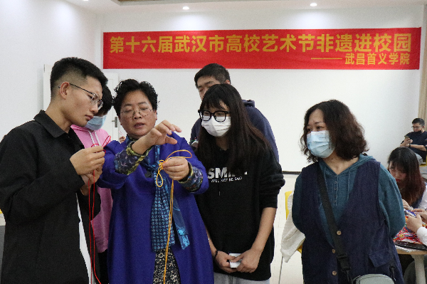 据了解,此次活动由校团委和艺术设计学院联合主办,邀湖北省工艺美术大师、武汉市洪山区非物质文化遗产毛线编织画代表性传承人、武汉民间工艺技术能手印迎春女士,为同学们传授中国结的制作技法。活动还邀请了武汉市文旅局和洪山区文化馆参与,校团委罗萍书记、郭佳老师,艺术设计学院党总支杨琳书记参加活动。