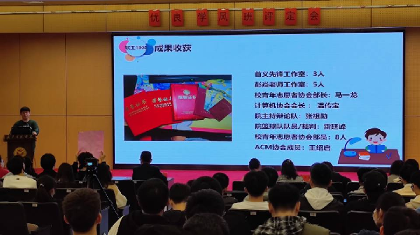 信息科学与工程学院:优良学风 你我共建 2021-11-22 16:39:45 <<< 上一张 下一张 >>> 11月12日中午,信息科学与工程学院2020-2021学年优良学风班评比大会在11栋106教室举行。该院党总支副书记汪晓航、分团委书记冯欢及全体大二至大四年级辅导员参会并担任评委。 本次共有8个班级参与展示评。各班按照抽签顺序依次上台,分别围绕班级思想建设、组织建设、学风建设等方面进行了PPT宣讲和视频展示。 汪晓航作总结讲话,号召各学生班级向优良学风班级学习,提升班级凝聚力,增强集体荣誉感和归属感,为提升优良学风、锻造优良班风打牢基础,将“学校引领学风、学院培育学风、班级创建学风、学生维护学风”的目标有成效地持续推进下去。 通讯员 冯欢 编辑 张璐