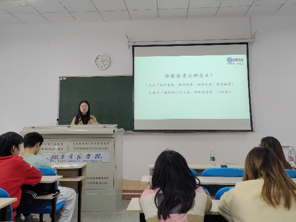 张晶老师在总结讲话时表示,此次活动旨在帮助同学们认清考研形势、精准定位考研目标,希望大家放平心态,调整好自己,认真规划和备战考研,圆梦理想学府。